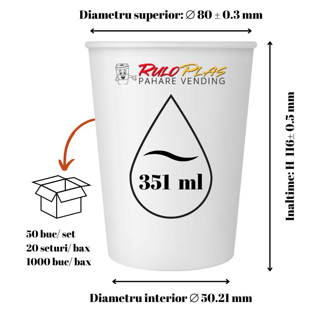 Pahare din carton vending 12 Oz, RLP 03, 351 ml